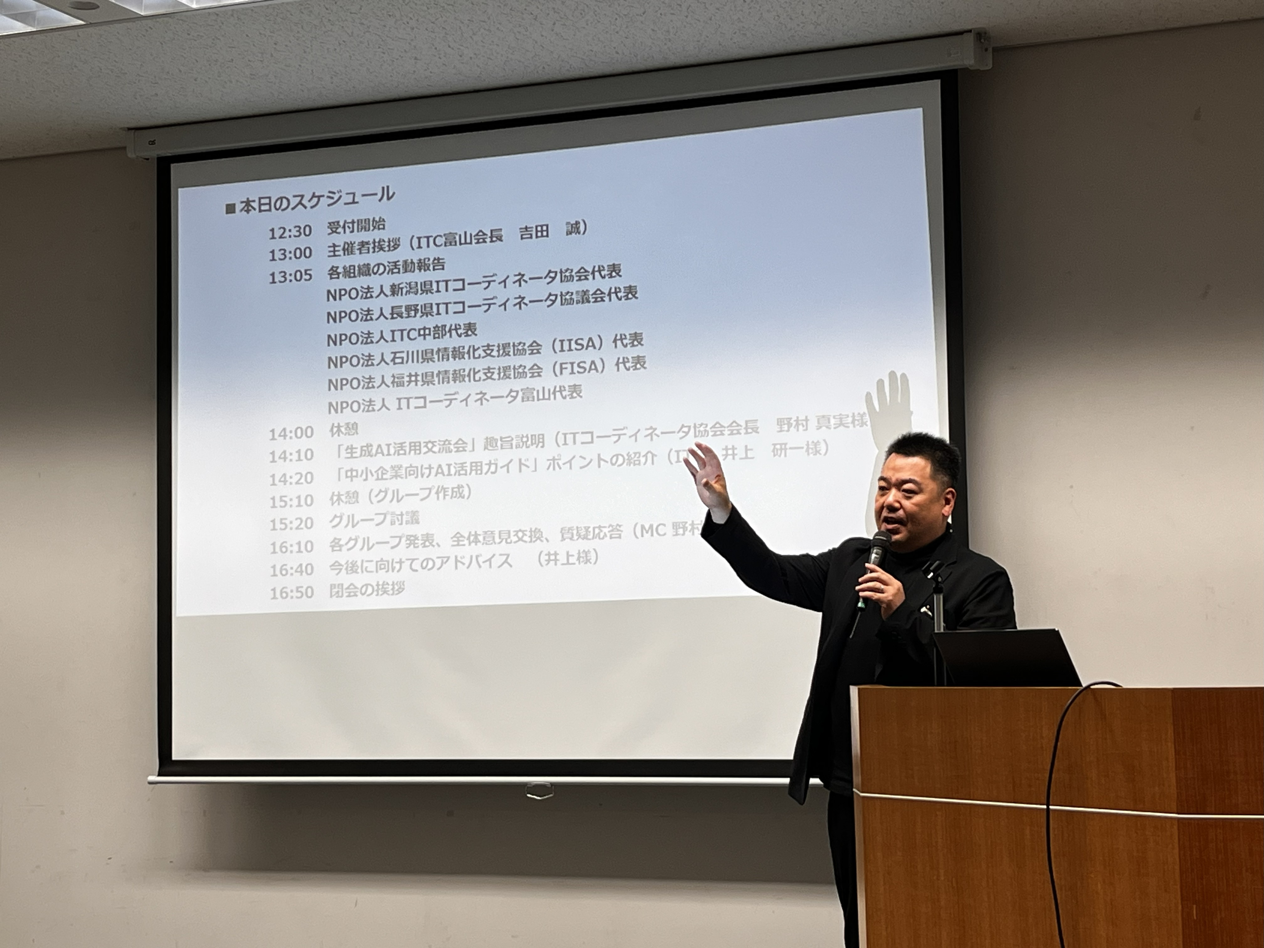テーマは”『生成AI活用交流会』 in 北陸~ 中小企業への生成AI活用支援とITC自身の実践的な活用を考える ~”とし、